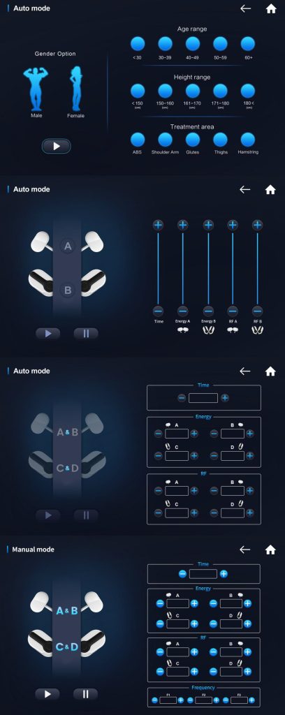 Στην διαμόρφωση 4 καναλιών η κάθε κεφαλή ελέγχεται ξεχωριστά όσον αφορά την ισχύ της έντασης του ηλεκτρομαγνητικού παλμού και των RF ! Αυτό επιτρέπει την πλήρη εξατομίκευση της θεραπείας, προσαρμόζοντας τις ρυθμίσεις σε διαφορετικές περιοχές του σώματος ή σε διαφορετικές ανάγκες του πελάτη ταυτόχρονα, μεγιστοποιώντας την αποτελεσματικότητα και την άνεση.